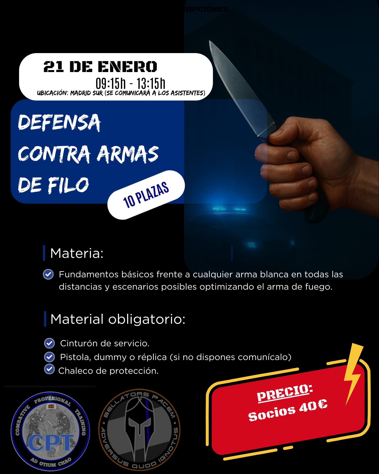 Curso de Defensa Policial contra armas de Filo. 21 De Enero 10 plazas en turno de MAÑANA. - Lugar de […]